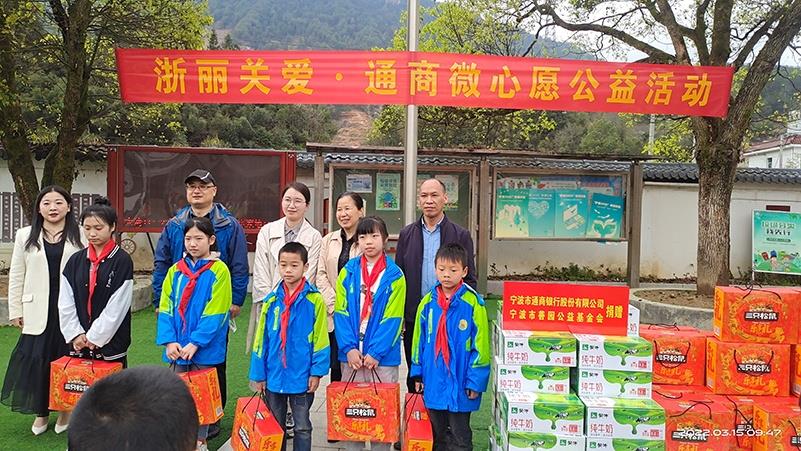 2022年3月15日,我行与宁波市善园公益基金会共同举办的“浙丽关爱 通商微心愿”公益活动走进我省丽水地区,为云和县安溪小学和松阳二中的部分困难儿童送上了新年礼包。这也是我行自2016年设立“通商公益慈善基金”以来,连续第6年针对贫困儿童组织开展“新年微心愿”活动。本次活动是省妇联、省民政厅等单位共同倡导的“温暖来敲门”暖冬关爱行动之一,通过各社会组织、企业共同发起大型乡村困境儿童关爱活动,为他们送去一份暖冬礼包,使广大乡村困境儿童感受到社会各界的关爱,帮助他们快乐生活、健康成长。