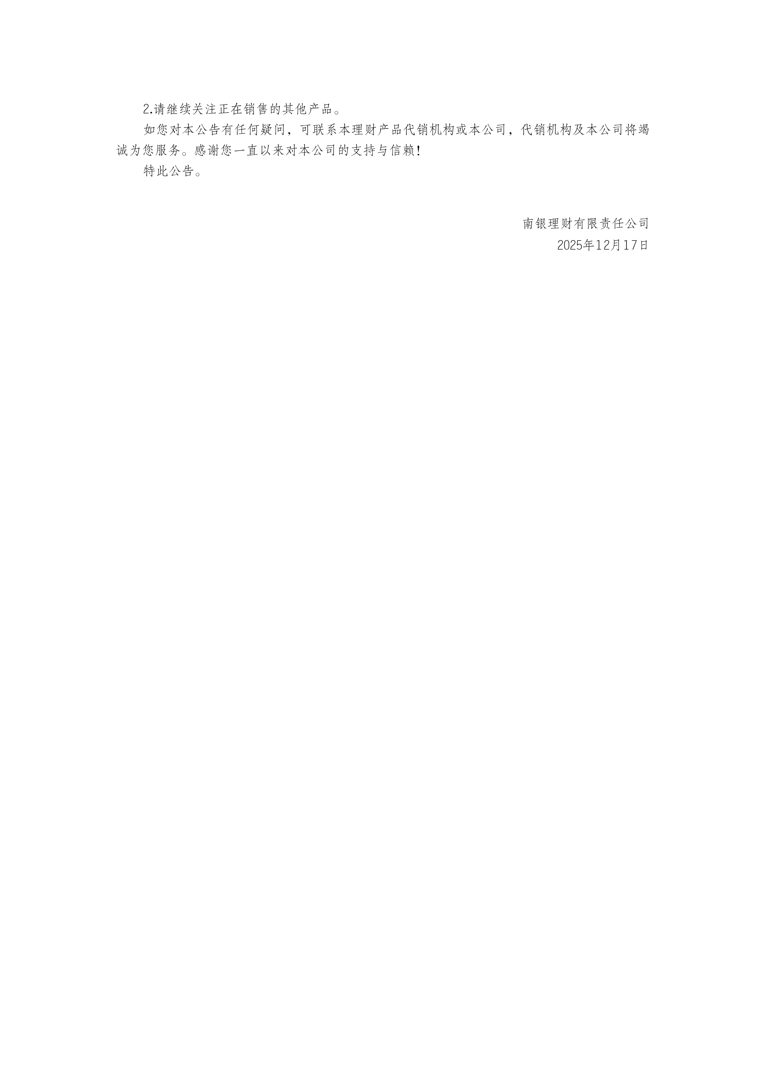 南银理财珠联璧合鑫逸稳半年127期封闭式公募人民币理财产品到期公告(2025-12-17)