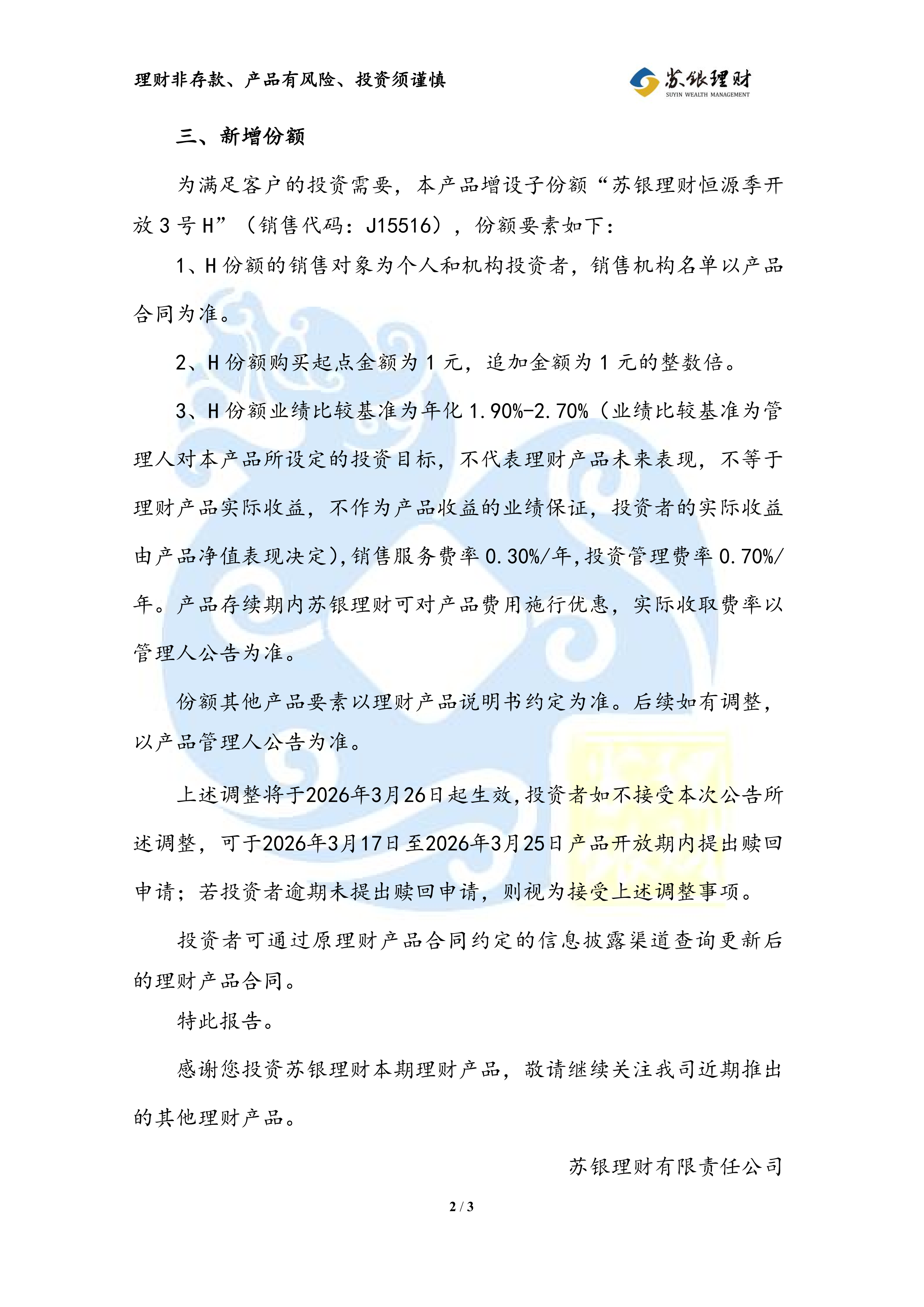 关于调整“苏银理财恒源季开放3号”理财产品要素的公告(2026年3月9日)