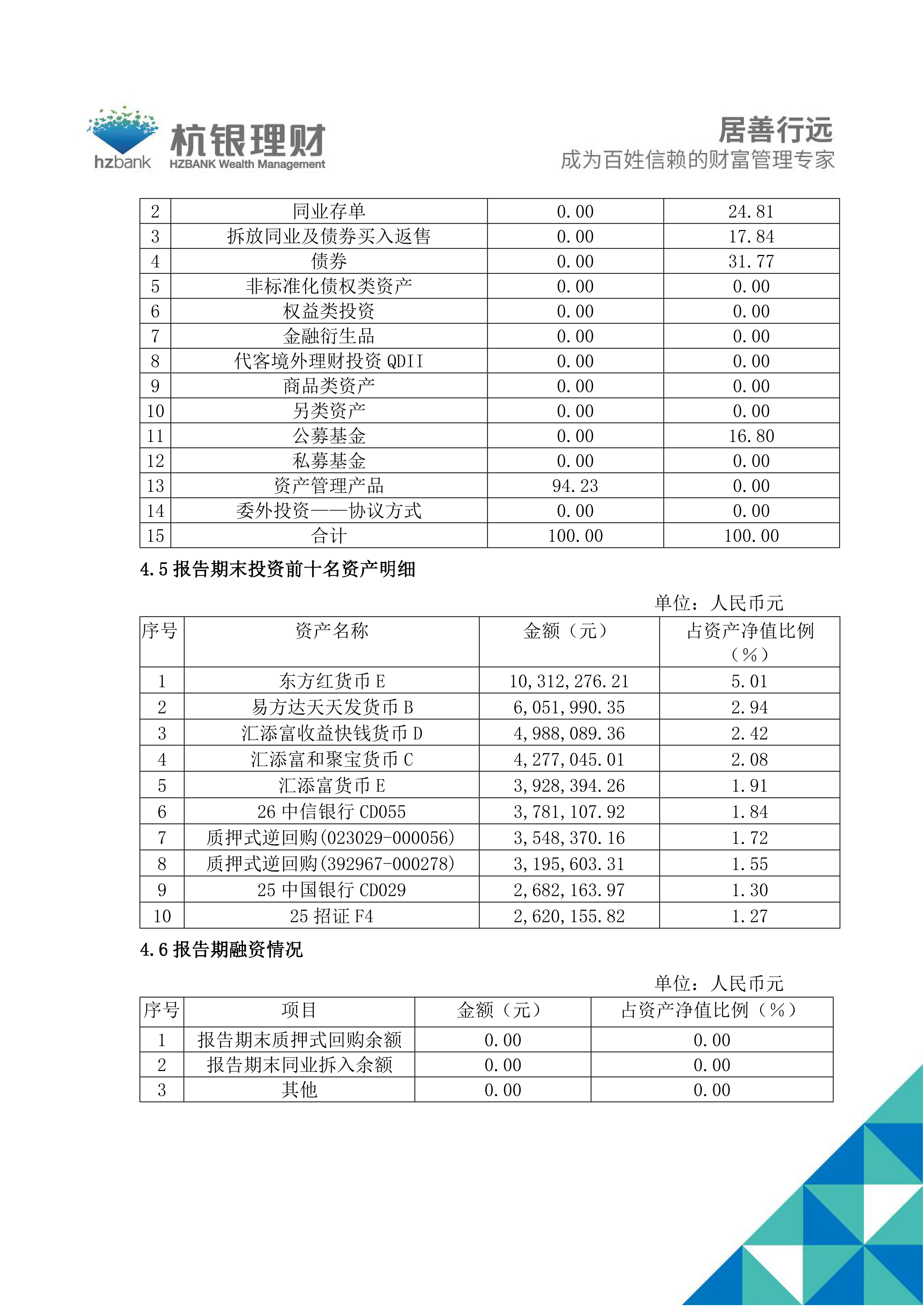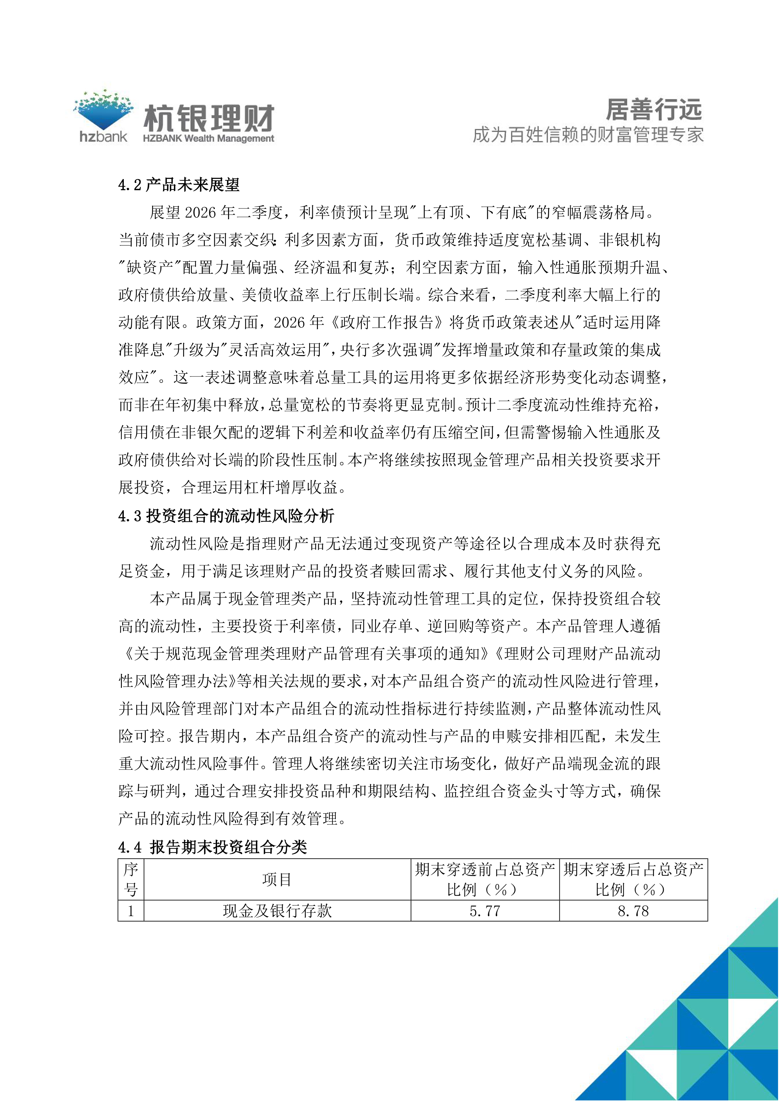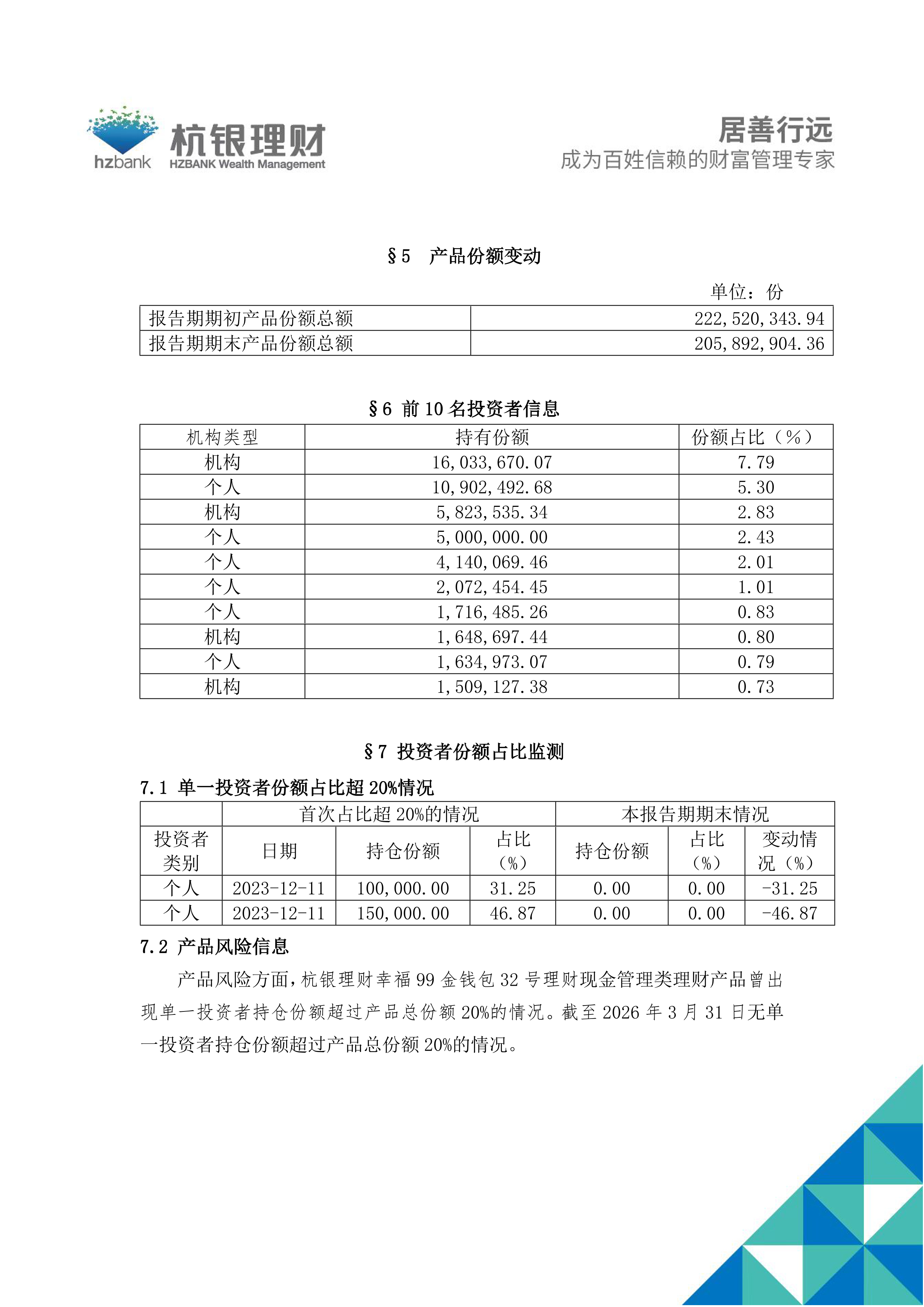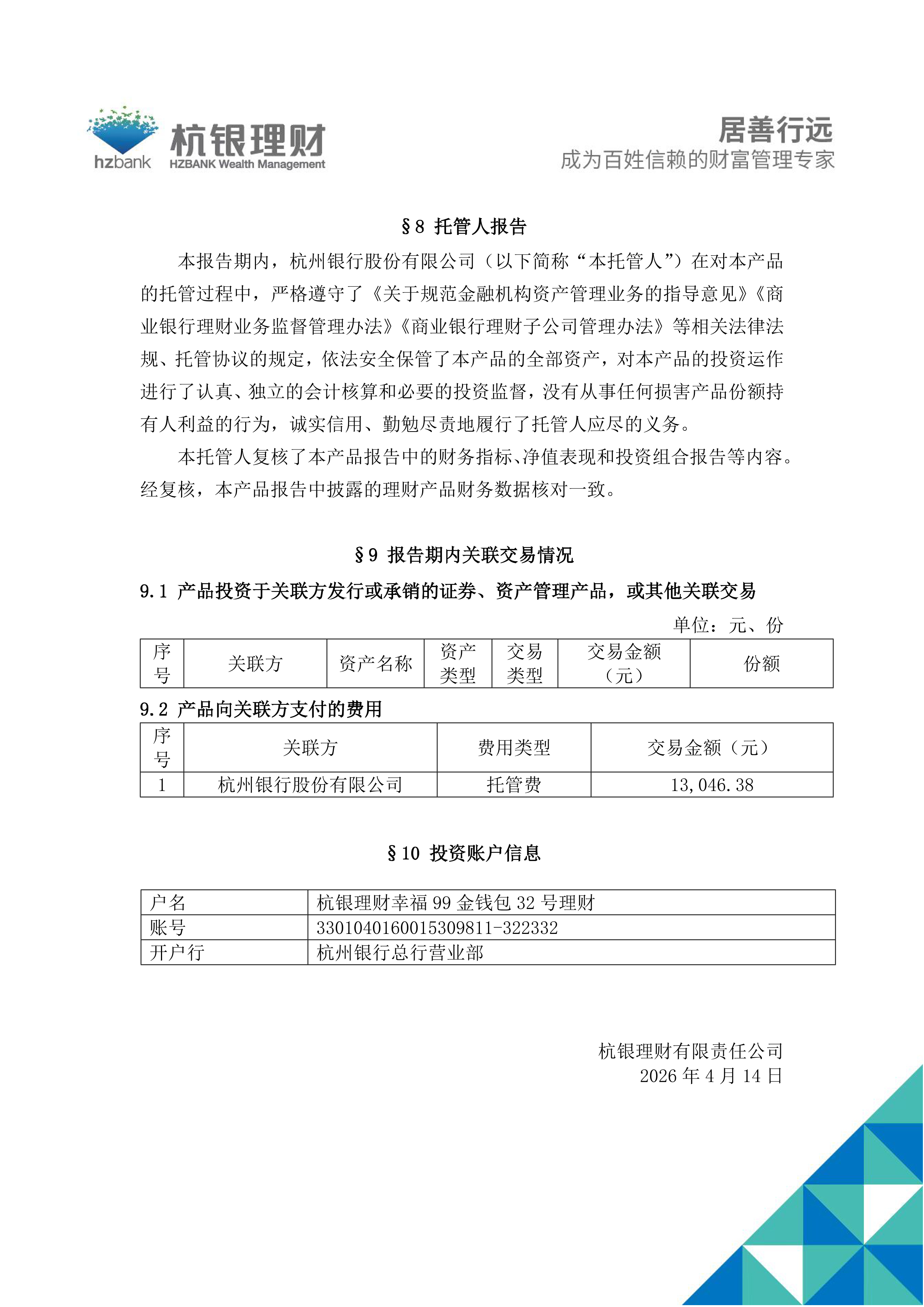 杭银理财幸福99金钱包32号理财产品2026年第1季度定期报告