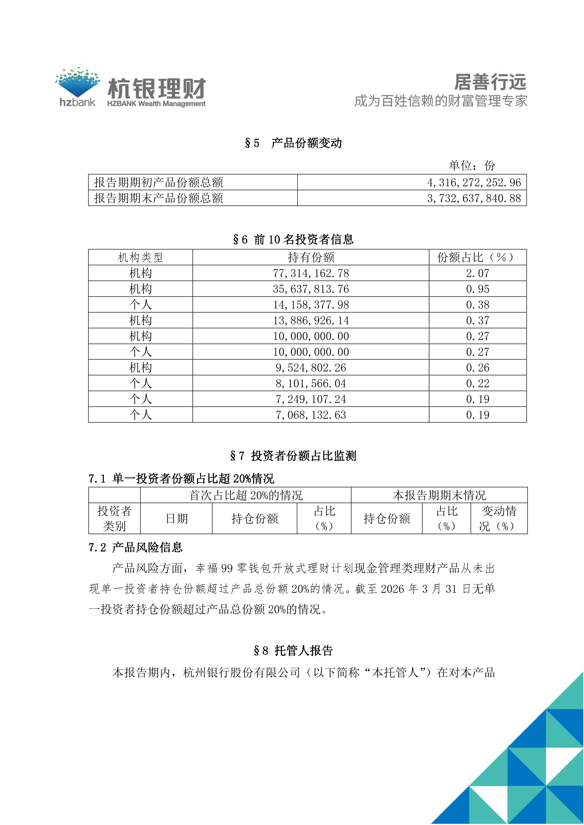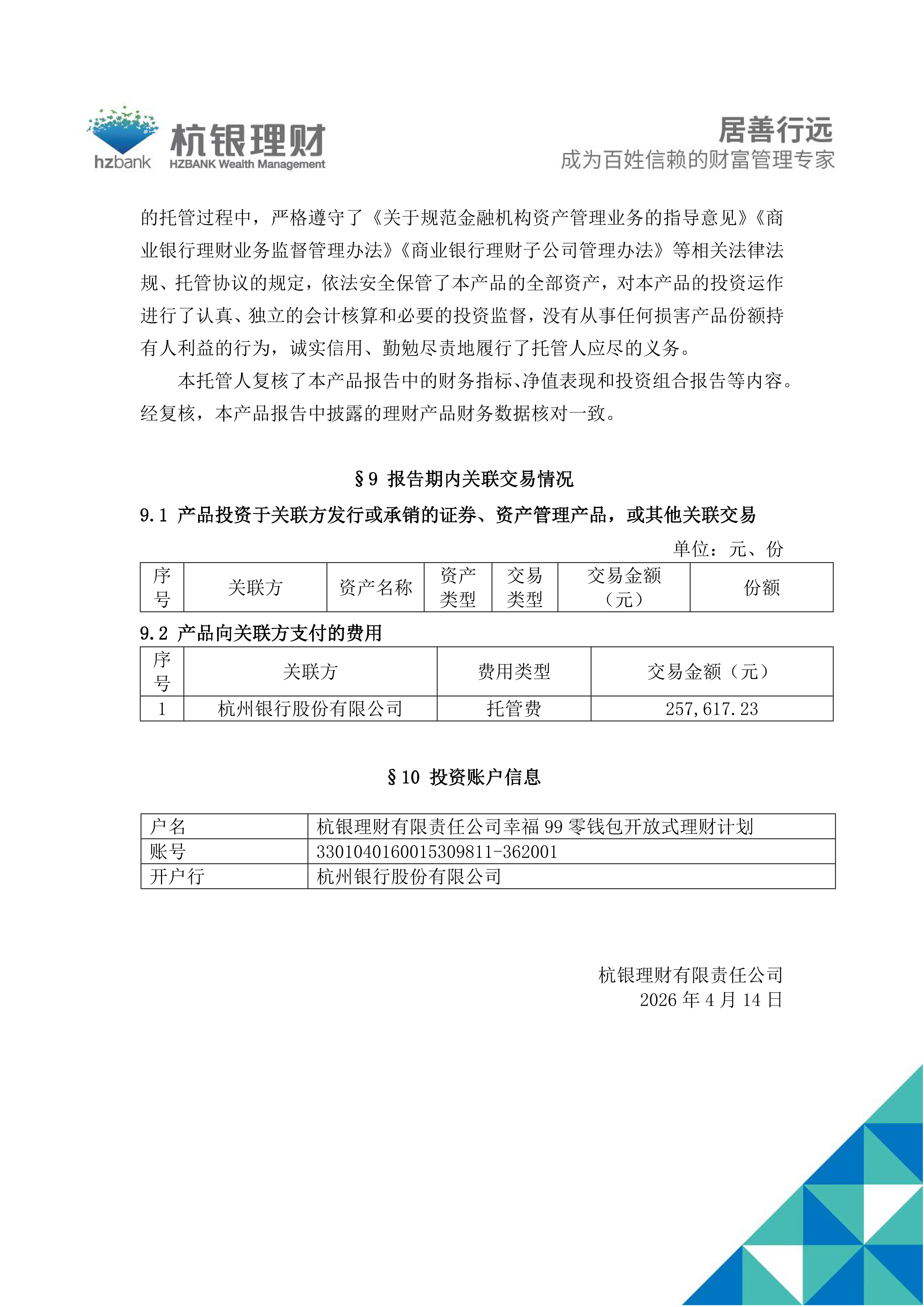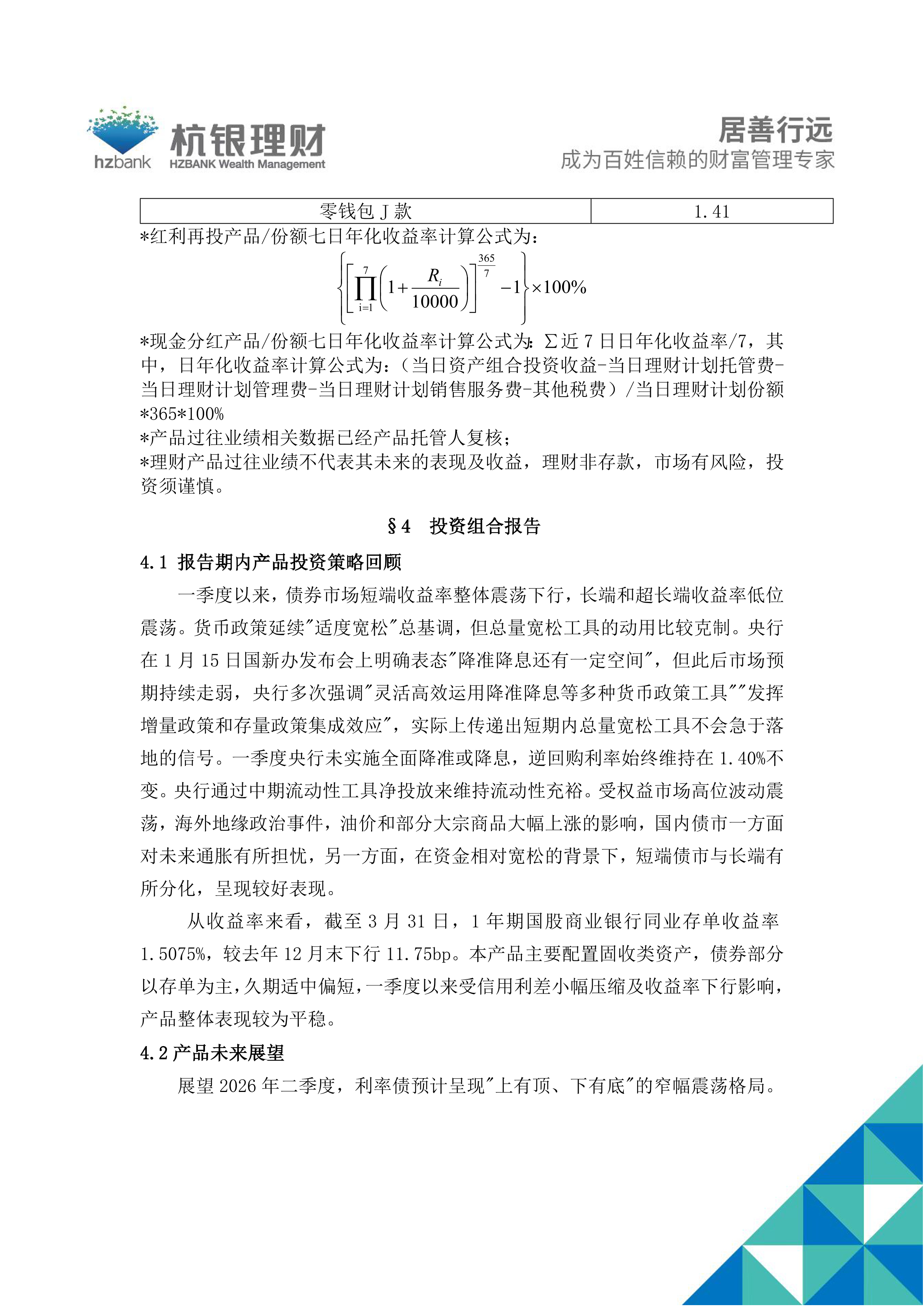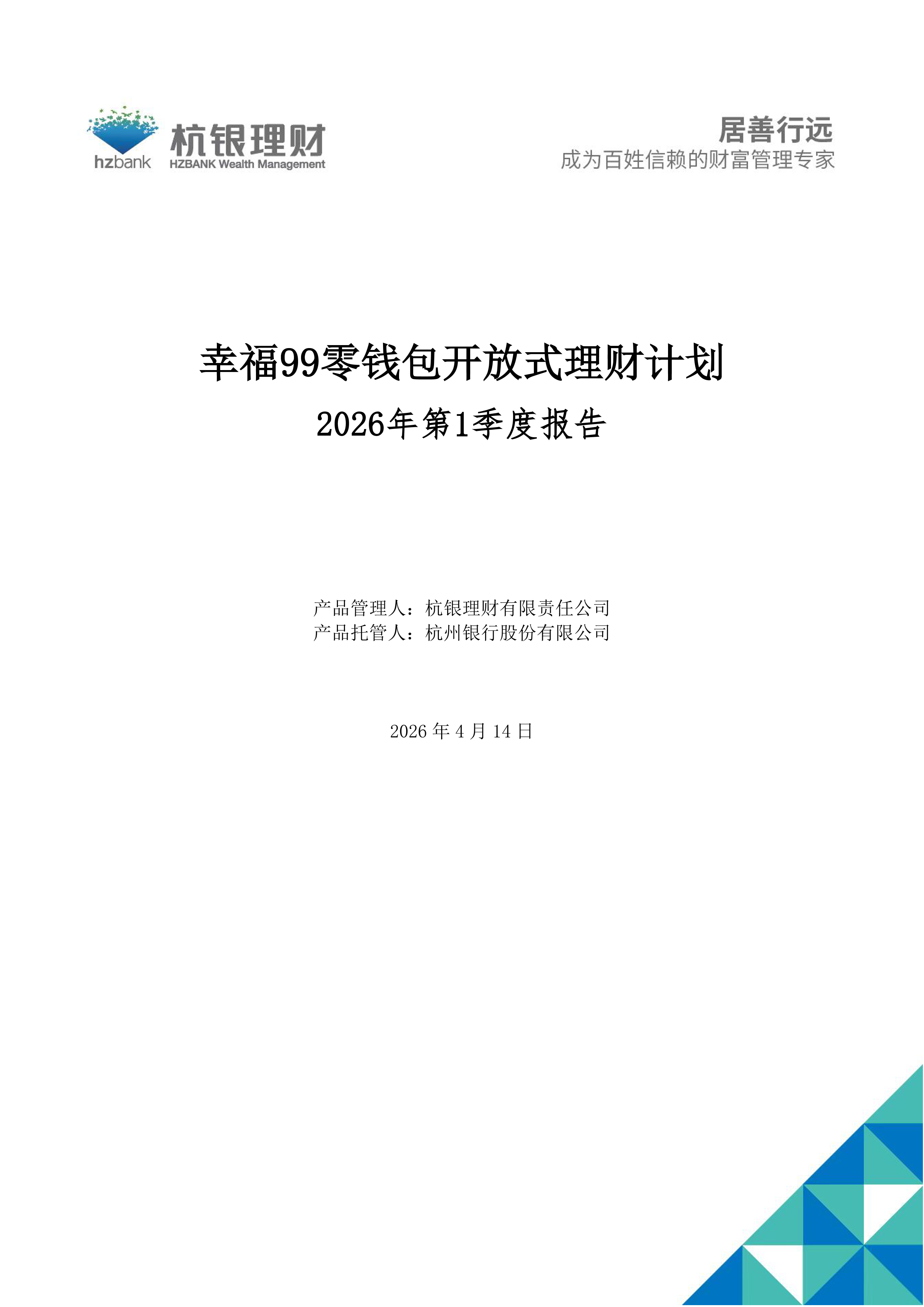 幸福99零钱包开放式理财计划产品2026年第1季度定期报告